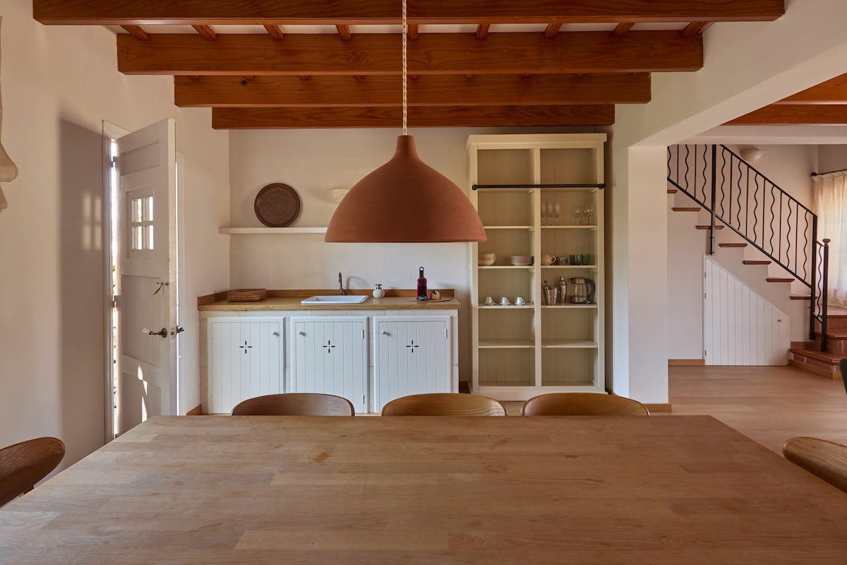Min. 30 sqm, inspiring, sunlight. With conscience, insulated with natural cork, refrigerated and heated up with green energy, oxygenated with air renovation, your rest is our priority! Intangibles. And tangibles: minimalist, eclectic decoration with original brushes strokes from the 18th century Illustrated British Maó: pine tree beams, Art Nouveau tiles and mosaics, stuccos, parquet flooring, sash windows and modern materials: stainless stairs, fir tree partitions or Nordic fireplaces.
