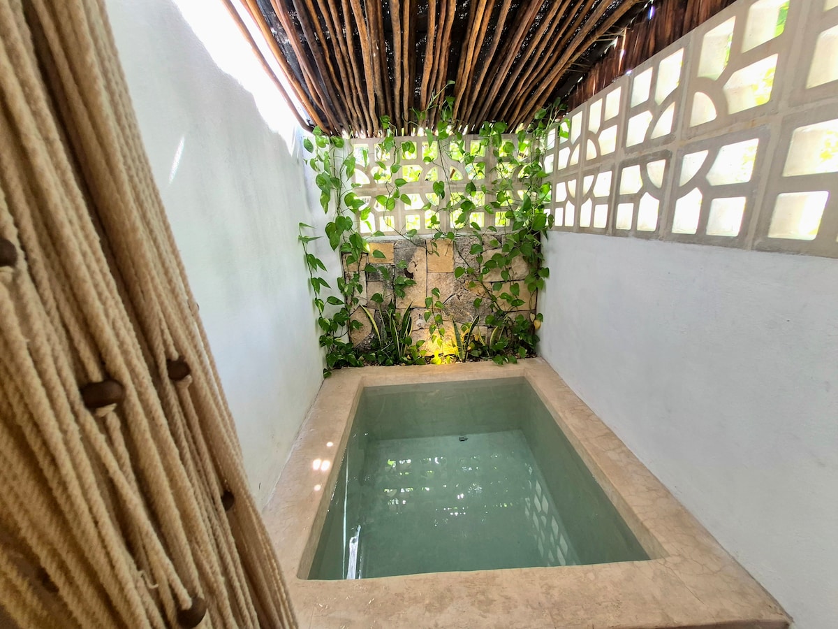 Boheems, privé en vol rust 🌿 Geniet van een handgemaakt ontwerp met je eigen zwembad, tropische sfeer en een toplocatie in het historische centrum van Mérida — perfect voor koppels of kleine gezinnen die op zoek zijn naar privacy en authenticiteit. 🛏️ Ideaal voor 3 volwassenen of 2 volwassenen + 2 kleine kinderen.