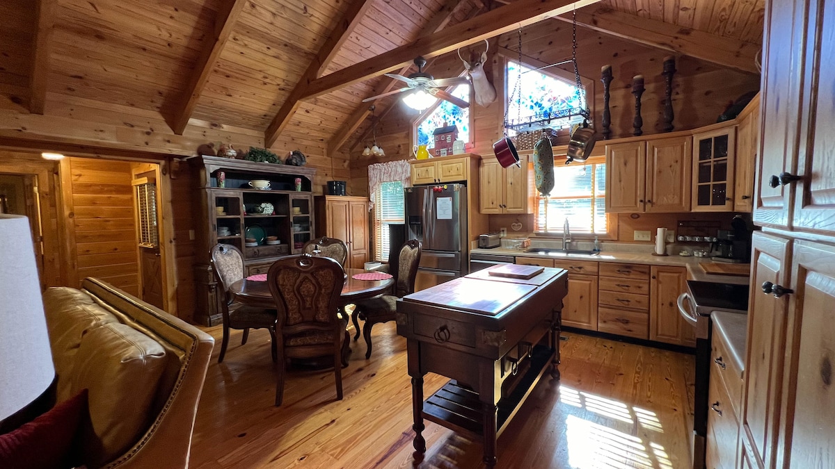Ontsnap naar onze charmante hut met 3 slaapkamers met een loft (4e slaapkamer) en bubbelbad, genesteld op bijna 3 beboste hectare in Warm Springs/Pine Mountain. Het is perfect voor een romantisch toevluchtsoord of familie- en vriendenbijeenkomst en biedt serene ontspanning met een schommel op de veranda, een afgeschermde veranda en een bubbelbad. Verken het nabijgelegen Callaway Gardens, FdR Park en Wild Animal Safari, op slechts een klein stukje rijden. Nieuw op Airbnb, maar met uitstekende VRBO recensies. Reserveer nu voor een rustig en verjongend uitje!