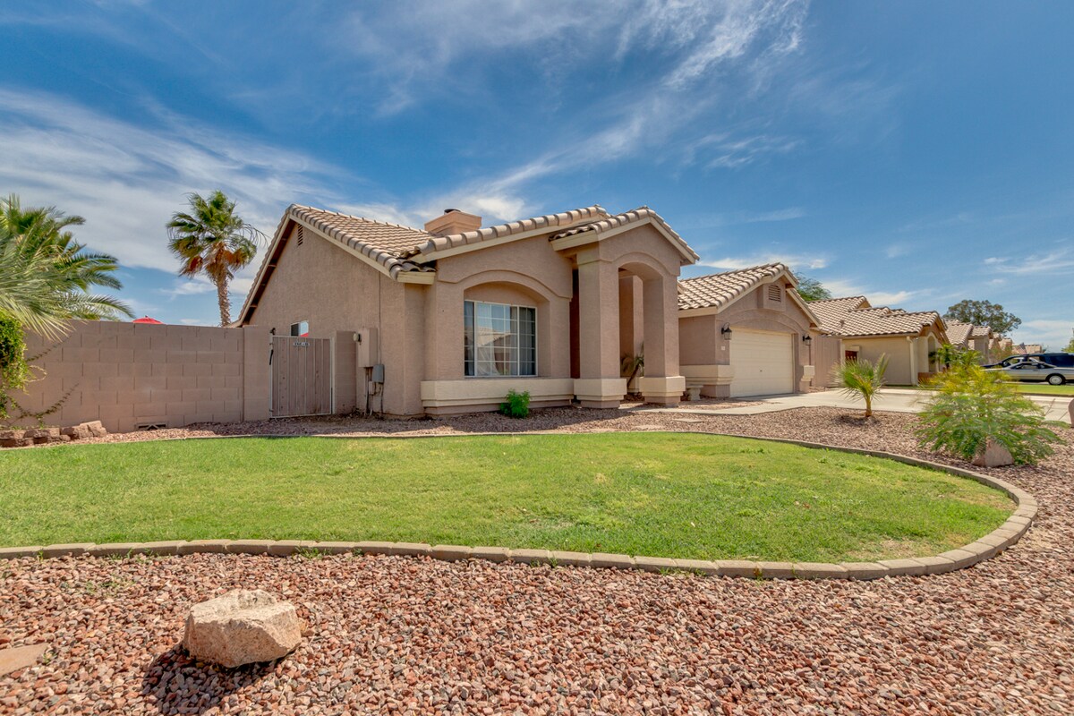 Dit is een unieke, vrijstaande bungalow die ik liefdevol de 'AZ Music Shack' noem. Oorspronkelijk bouwde ik het om mijn muziekstudio te zijn. Het is gelegen in het hart van up and coming Downtown Chandler. Handige loopafstand van bars/restaurants/winkels, en je kunt meestal 7 nachten per week live muziek vinden! Het huis heeft een semi-privé, gedeeltelijk omheinde voortuin en een kleine privé omheinde achtertuin, lastig gevallen met kunstgras en straatstenen. Toeslag voor huisdieren: vanaf $ 75.