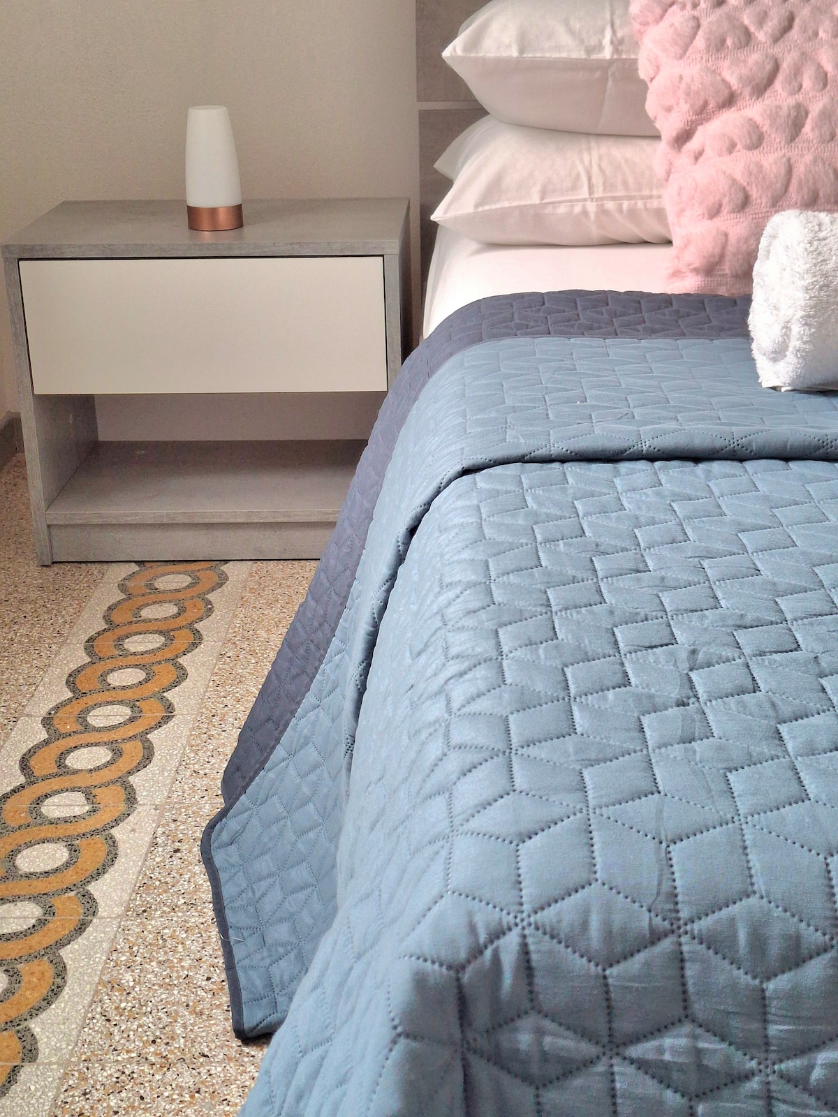 Appartamento vicino alla stazione dei treni di Piazza Matteotti che gode della vicinanza col quartiere Castello, col quartiere Stampace e col Rione Marina. La casa fa parte di un palazzo costruito intorno alla metà del secolo scorso ed è stato ristrutturato per l'ospitalità: gli impianti sono nuovi, la cucina ed i bagni nuovi ed i materiali originali come pavimenti di graniglia, infissi e stucchi decorativi sono stati recuperati donando agli ambienti un fascino vintage autentico.