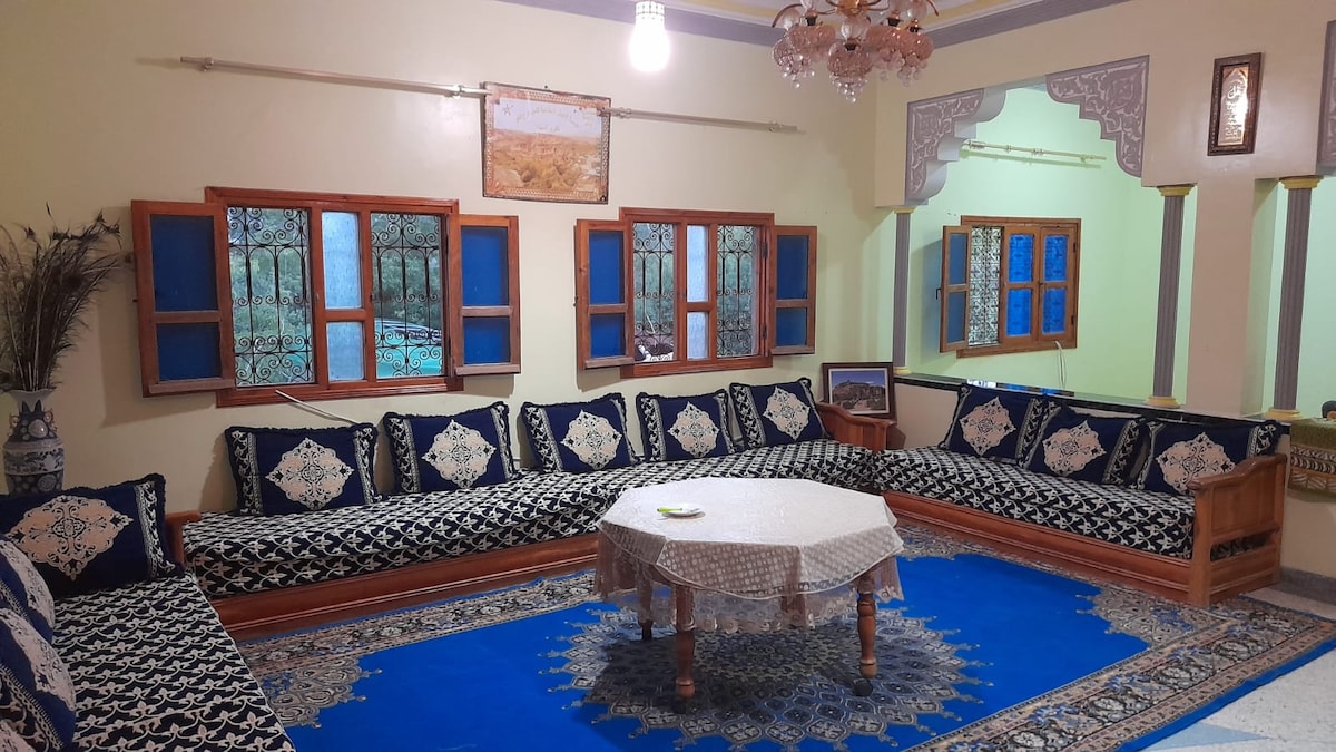 Welkom bij onze mooie local in Kelaa Mgouna Dades Valley, waar we alles hebben voorbereid om gasten van over de hele wereld te ontvangen! Onze accommodatie beschikt over drie badkamers en vier douches. We hebben zes kamers met totaal negen bedden, waardoor onze ruimte perfect is voor zowel grote groepen als soloreizigers. Onze grote tuin met een Pergola is de perfecte plek om te ontspannen en te genieten van de schoonheid van de natuur. Binnen vind je een traditionele woonkamer om te ontspannen. We bieden ook wifi voor jouw eigen gemak.