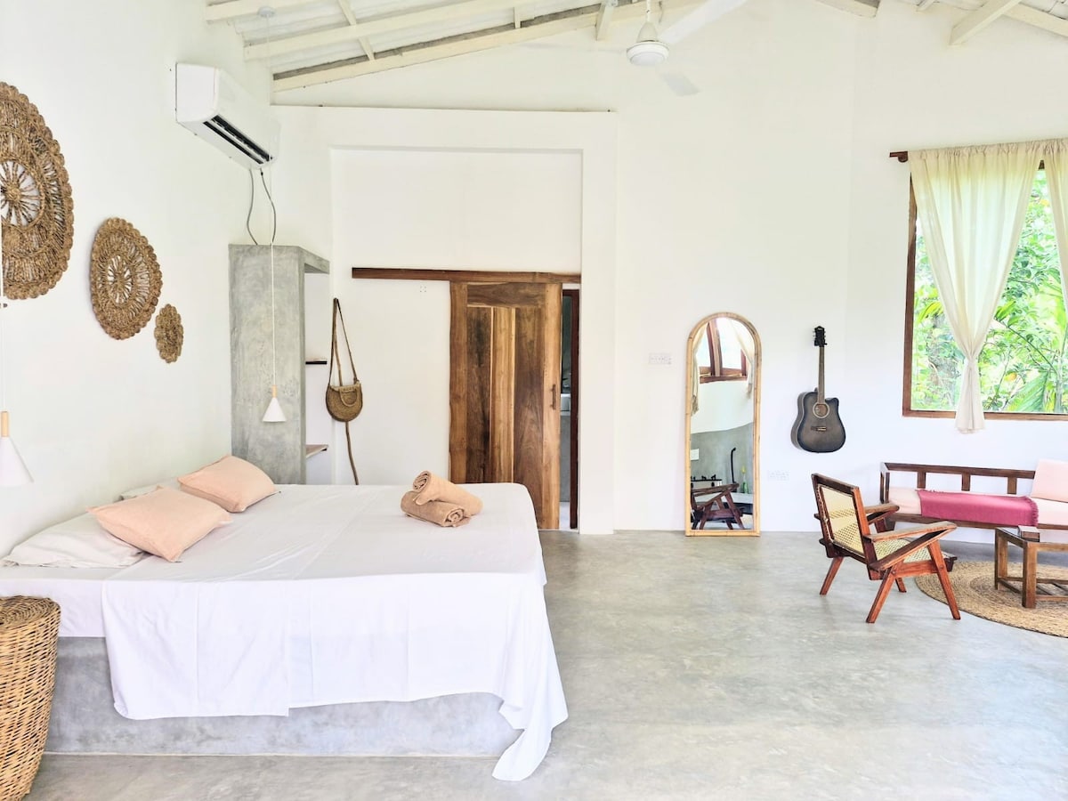 Discover tranquility at our fully self contained villa in the seaside village of Madiha. With the ocean at your doorstep, lush gardens, and relaxing atmosphere, it's the perfect place for couples or those travelling solo seeking comfort. Fully equipped kitchen, AC and hot water showers. A 2 minute walk to the perfect waves of Madiha. Central to many cultural and tourist sites. Dedicated staff ensures a seamless stay. Book now for an unforgettable Sri Lankan retreat!