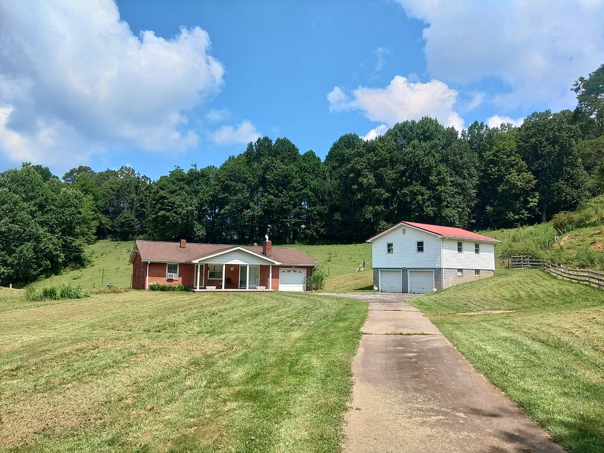 Cabin/Tiny Home. Ontspan en geniet van een prachtig uitzicht, 200 hectare paden, bossen, weilanden, boerderij en velden. ORKAAN HELENE: PADEN ZIJN NU NIET VOLLEDIG TOEGANKELIJK VANWEGE HELENE. Onze paden en bossen zijn verwoest met honderden bomen verderop. Veel wandelpaden zijn nog steeds niet opgeruimd. Onze 1,5 mijl bovenste bergkam pad lus en een rivierpad zijn nu open. Weilanden en velden zijn meestal vrijgemaakt en alle gebieden rond het huisje zijn volledig vrijgemaakt met een prachtig uitzicht op velden en bergen.