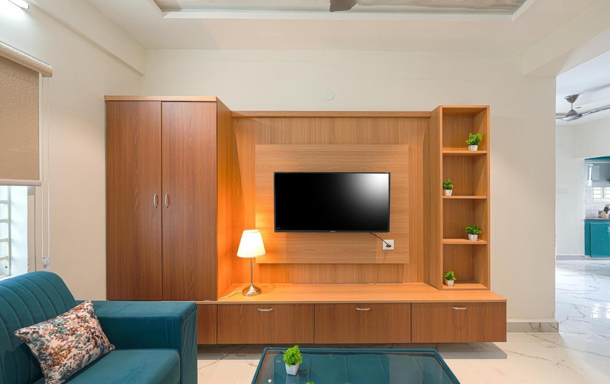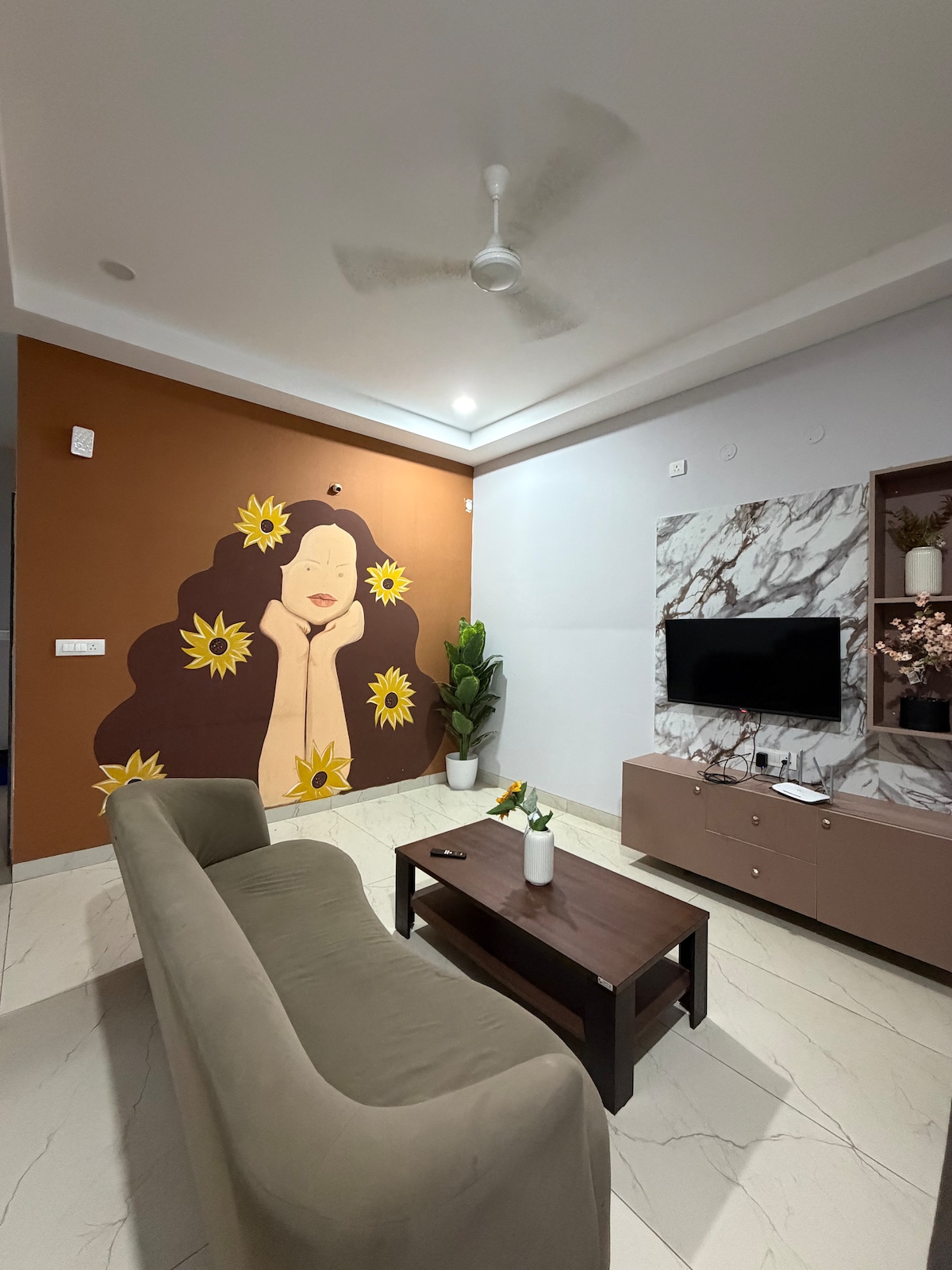 Kom tot rust met de Executive en een vredige accommodatie. De centraal gelegen plek verwelkomt je in deze 2 bhk Flat. Eenmaal binnen maken de 4K-tv en bank in de hal het perfect voor films en ontspanning. Naadloze wifi-verbinding is perfect voor je werk. Je hebt een eenvoudige en nuttige keuken aan je linkerhand, Ruime hoofdslaapkamer met kingsize bed en De tweede slaapkamer heeft een queensize bed. Beide hebben een eigen badkamer met airconditioning. Beide slaapkamers hebben 1,5 ton airconditioning.