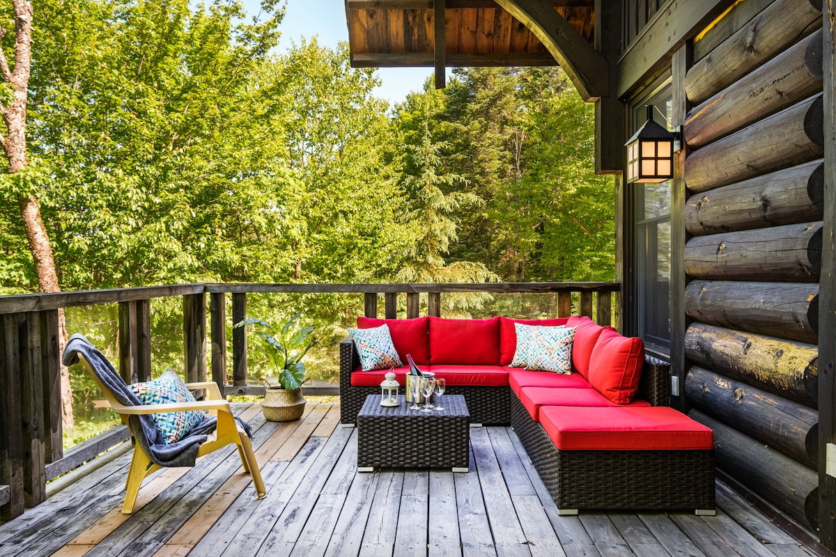 WEEGHUT | Idyllisch toevluchtsoord in de natuur - Spa en droge sauna met dé ultieme plek om te ontspannen - Grote fenestratie met uitzonderlijke helderheid die de binnenruimte overstroomt - Omgeven door bomen, genesteld in het hart van de natuur - 2 grote patio 's met veel ontspanningsruimtes - Binnen- en buitenhaard - Minder dan 15 minuten van de Mont-Tremblant