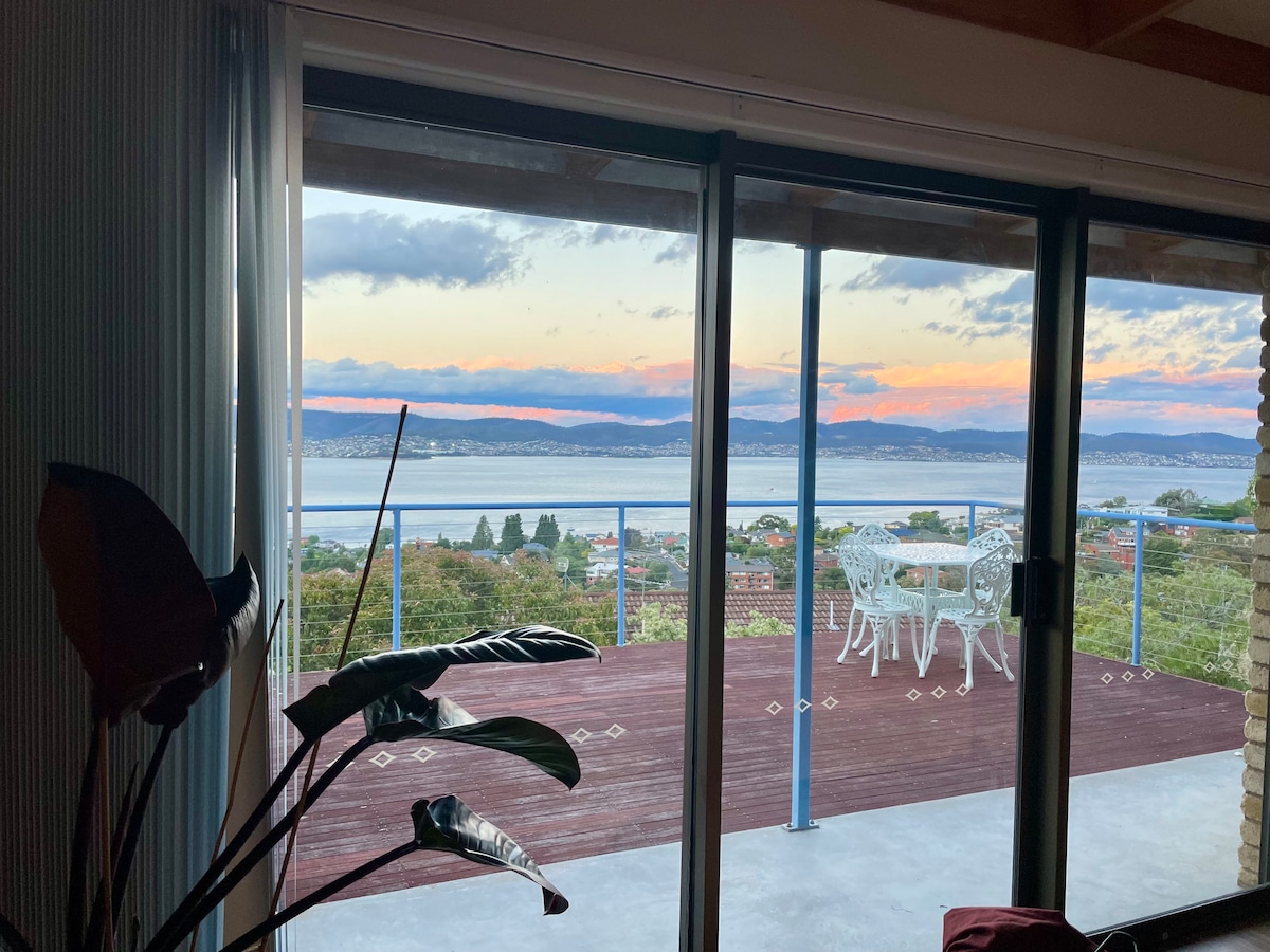 This is an architecturally designed dwelling, completed in February 2018. The accommodation provides a beautiful and unique place to stay for those wishing to visit Tasmania. Situated amongst the stunning suburb of Sandy Bay, you will be 5 to 10 minutes drive from Hobart City, historic Salamanca and Battery Point. As soon as you walk through the large tas oak front door, you are rewarded with views of the River Derwent, Wrest Point, Tasman Bridge and stunning Kunanyi/Mt Wellington.