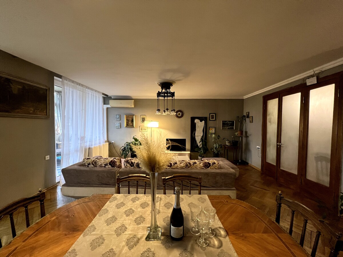 ⸻ Een licht, ruim appartement in het centrum van Tbilisi, op de 4e verdieping van het huis (geen lift). Een grote slaapkamer met een kingsize bed, een badkamer met een bad, twee balkons met panoramisch uitzicht. Een gezellige woonkamer en keuken met een open haard zorgen voor een bijzondere sfeer. Keuken heeft alle apparatuur die nodig is om te koken. Op loopafstand zijn er Dry Bridge, Rustaveli, theaters, parken en restaurants. Je kunt het samen met het appartement op de 5e verdieping huren voor een grote groep.