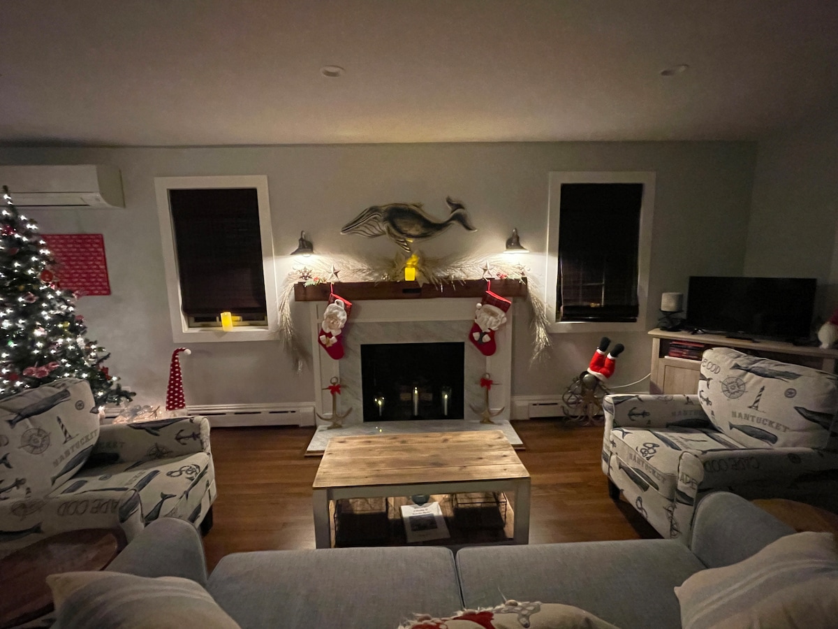 Verblijf in het centrum van Mystic, op een steenworp afstand van alle restaurants, winkels en bezienswaardigheden! Laat de auto 's achter op onze oprit met 3 auto' s. Ontspan in de open grote kamer 1e verdieping met een grote bank, 65inch HD Smart TV! Volledige keuken en een eethoek. Wasserij op 1e met 1/2 bad en volledige slaapbank. 2e FL heeft 1800 's charme met kathedraalplafonds, 2 queensize slaapkamers en bad met douche - beddengoed aanwezig. Ga naar buiten naar een eigen omheinde tuin met barbecue, terras en eet of speel cornhole