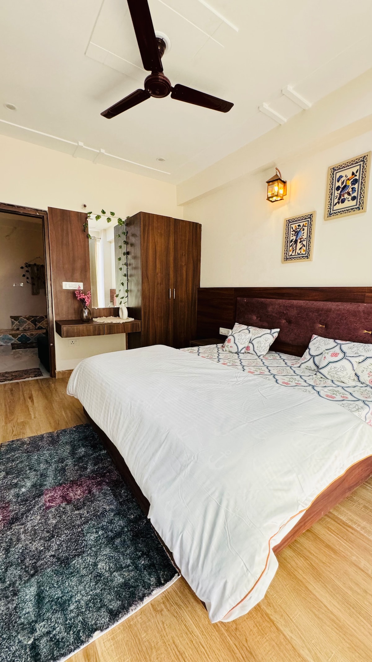 Welcome to Gharonda, your spacious yet cozy boho-themed retreat in the heart of Tapovan. This beautifully designed Airbnb offers a warm, artistic vibe with a stunning mountain view and a serene balcony perfect for slow mornings. Located close to secret waterfall, also sits just 3–4 km from Lakshman and Ram Jhula. Tapovan’s prestigious surroundings and the main rafting spot make it an ideal base for exploration. With waterfalls nearby it promises comfort, charm, and true Rishikesh experience.