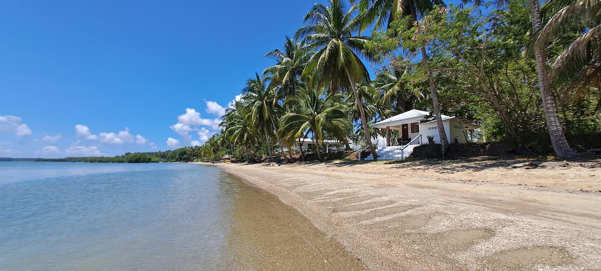 Een gezellig strandresort met een prachtig uitzicht op het eiland.
