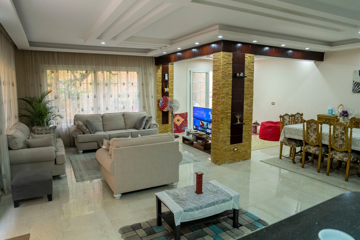 Geniet van een rustig verblijf in deze lichte woning met drie slaapkamers in de 5th Settlement in New Cairo. Op slechts enkele minuten van het bruisende St. 90 en Downtown Town New Cairo met zijn cafés, restaurants en winkels. Snelle toegang tot de ringweg die je verbindt met de historische bezienswaardigheden van de stad (~35 minuten naar het oude Caïro). De woning biedt twee balkons, een complete keuken, snelle wifi en gratis parkeergelegenheid. Stijlvol, vlekkeloos en betaalbaar, je ideale uitvalsbasis om Caïro te verkennen en je thuis te voelen. Neem op elk moment contact met me op voor meer informatie of vragen :)