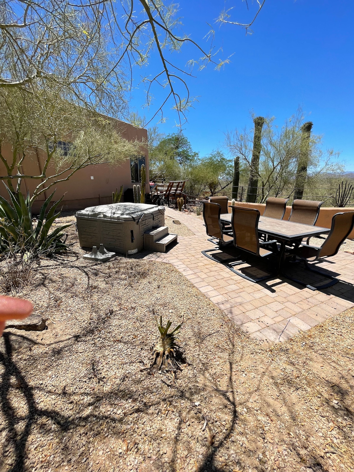 You are only 12 miles from the TMSC chip plant but will experience the serene Sonoran desert! Hike, ride horseback or step up the pace with off rode vehicles. Start or end your day with arresting Arizona sunrises and sunsets from the porch. And don’t forget to catch the stars! 5 minutes to the Road Runner where you can eat, dance, and watch bull riding on the weekends. Seasonal basic breakfast included on your first morning. Message if you need long term and we will work with you on pricing!