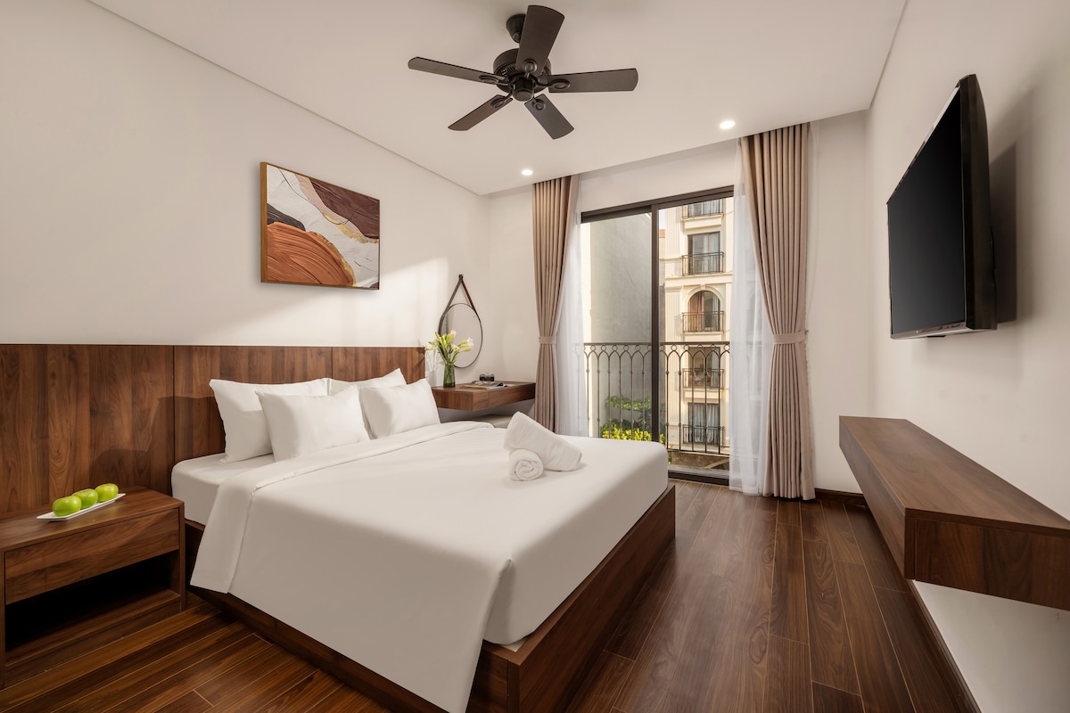 Een knusse kamer met raam in een luxe hotel - 150 meter van My Khe-strand - Het strand is door Forbes uitgeroepen tot het meest aantrekkelijke ter wereld - 2 km van Dragon Bridge, Han River Bridge, gelegen in het drukste toeristische gebied van Da Nang - An Thuong, dus het ligt dicht bij beroemde entertainment- en eetgelegenheden, zeer handig voor jou om de stad Da Nang te verkennen - Gelegen aan een straat ver van de hoofdweg, dus het is erg rustig voor je om goed te slapen - Buitenzwembad en fitnessruimte op de bovenste verdieping