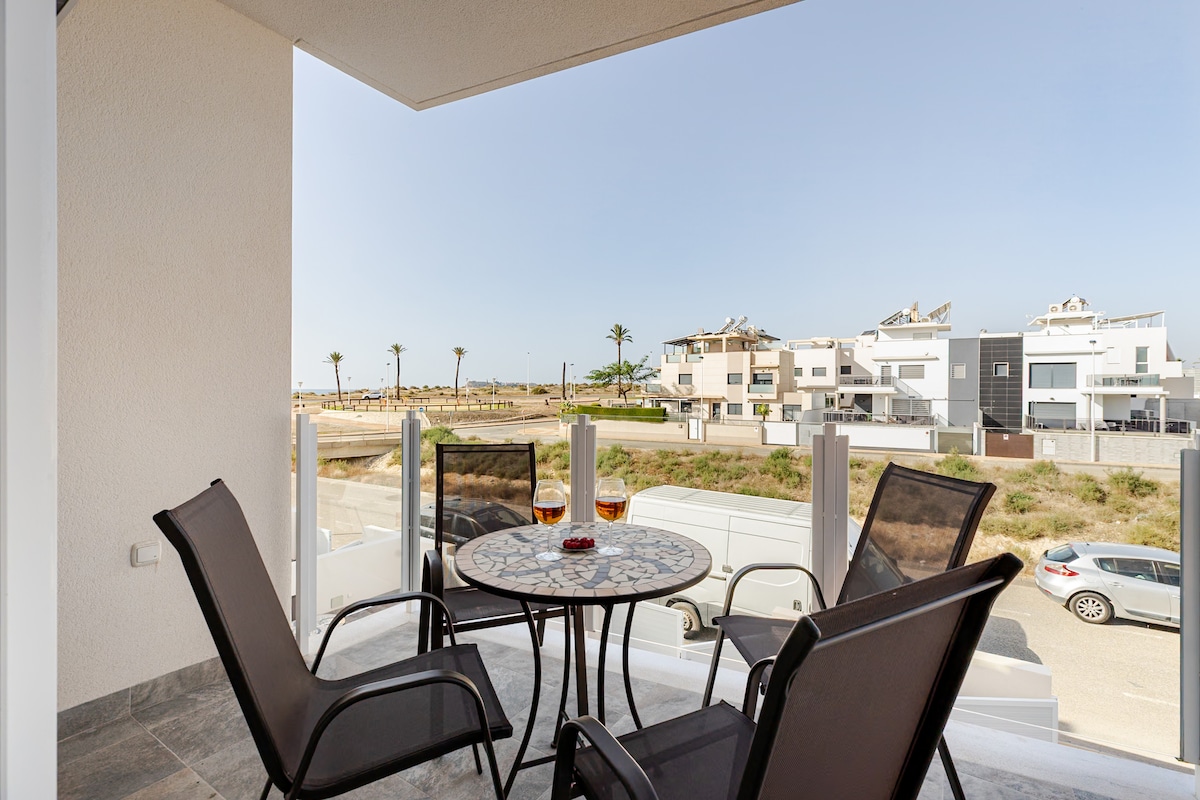 Ontdek dit luxe appartement in Hacienda del Álamo Golf Resort, Murcia. Met 3 slaapkamers, 2 badkamers en ruime terrassen, een van hen met eigen jacuzzi geniet je van de Spaanse levensstijl. Ontspan in de zwembaden of speel gratis op de tennis- en padelbanen. Dit toevluchtsoord ligt op een steenworp afstand van de golfbaan en combineert modern comfort met mediterrane rust. Parkeren inbegrepen. Ideaal voor het ervaren van de zon, keuken en cultuur van Spanje. Perfect voor een gezinsuitje of een golfreis.