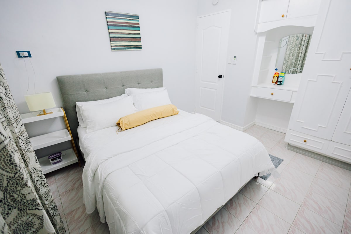 Enjoy and relax in this calm,homey and stylish space. The property is fenced and gated. The whole unit including Living Room, Dining Area, Kitchen, Bedroom,BathRoom and Laundry Area is your private home for the duration of your stay. Greatly recommended for remote working due to its high speed internet with built-in working station. Easy road access and near Marquee Mall, Alfamart, Pure Gold Supermarket and Restaurants. With parking lot inside and outside the unit.