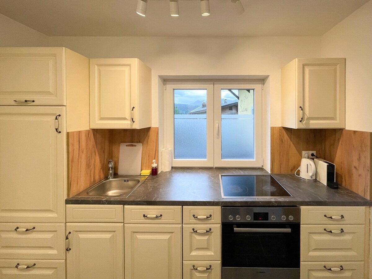 Klein gezellig appartement op de 2e verdieping, met keuken-woonkamer, koffiezetapparaat, waterkoker, elektrisch fornuis. Wifi aanwezig Met uitzicht op de Ahrnspitze en Seefelderspitze. voor 2 personen - met excursierestaurant op de begane grond. Als je niet wilt koken; gelegen op het pad in de winter op het pad in de zomer; ideale uitvalsbasis voor wandelingen en rondleidingen in de Leutasch/Tirol