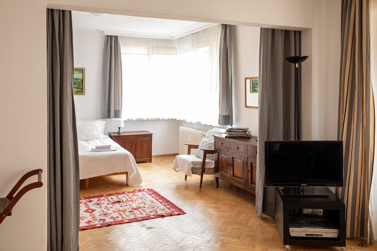 Na vele jaren van eenzaamheid nodigt het familienest van mijn jeugd je uit om het te revitaliseren met jouw energie. In ruil daarvoor krijg je de unieke charme van het XX-eeuwse appartement verrijkt door de dierbaren van 4 generaties. Je zult ook genieten van het uitzicht op de Vitosha berg in het hart van een van de oudste, rust en geliefde buurten van Sofia. Met metrolijn M4 van de luchthaven naar de Universiteit van Sofia is het 24 minuten (11stops) en na nog eens 6 minuten lopen ben je bij jou thuis.