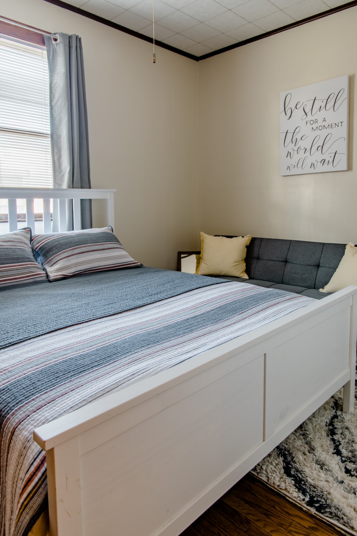 Take it easy at this unique and tranquil getaway. This one-bedroom cottage offers amazing Ohio River views. Sit and relax on the beautiful back deck while you enjoy watching the barges float by. You can also see the upper side of the Pike Island Locks and Dam, so don’t forget your binoculars! The kitchen is fully stocked with necessary items. It can sleep up to 2 people comfortably (1 queen bed). Perfect for a couple (or small family) visiting family in the Tri-State area.