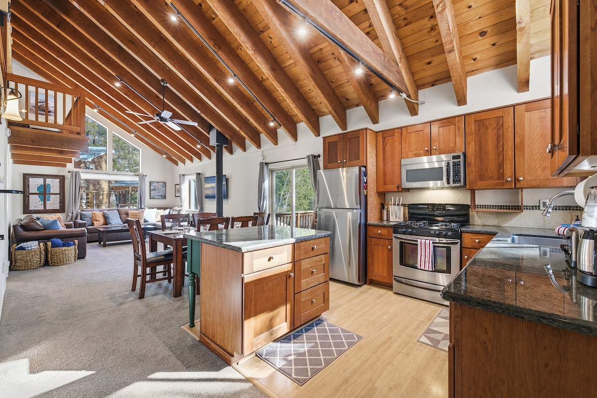 Gezellig, klassiek en bijgewerkt A-frame met uitzicht op Donner Lake, een rustige buurt en doordachte moderne updates waardoor het de ideale plek is om te ontspannen en te genieten van alles wat Truckee te bieden heeft! LET OP: ER zijn STRAKKE STEILE TRAPPEN IN DE WONING, evenals STEILE TRAPPEN BUITEN om vanaf beide ingangen in de woning te komen. WINTER - 4WD & KETTINGEN VEREIST. We hebben de oprit professioneel geploegd en je bent zelf verantwoordelijk voor het scheppen van de trap en het dek tijdens je verblijf.