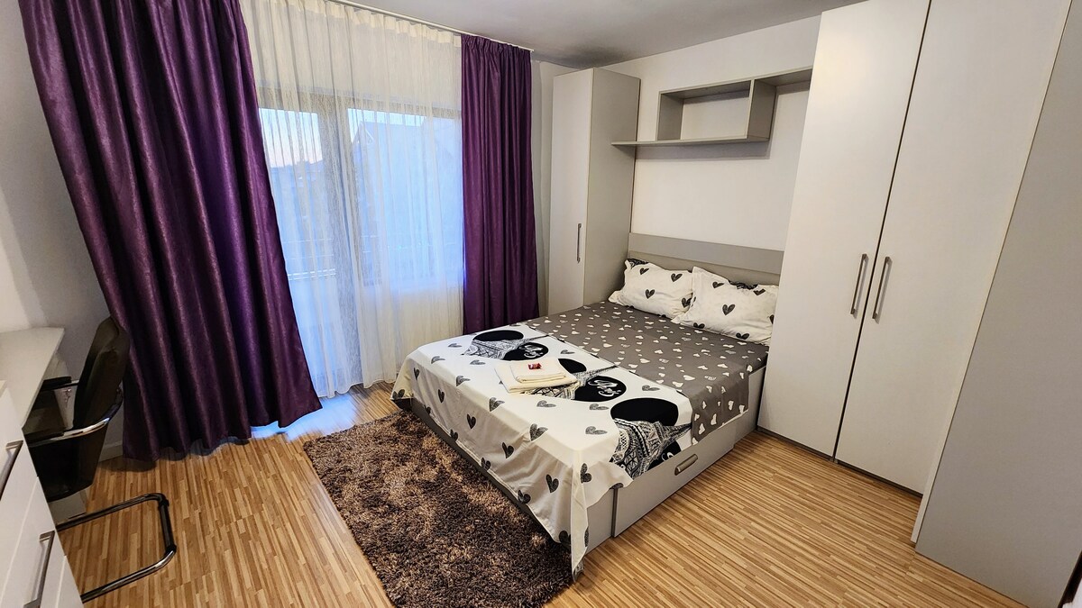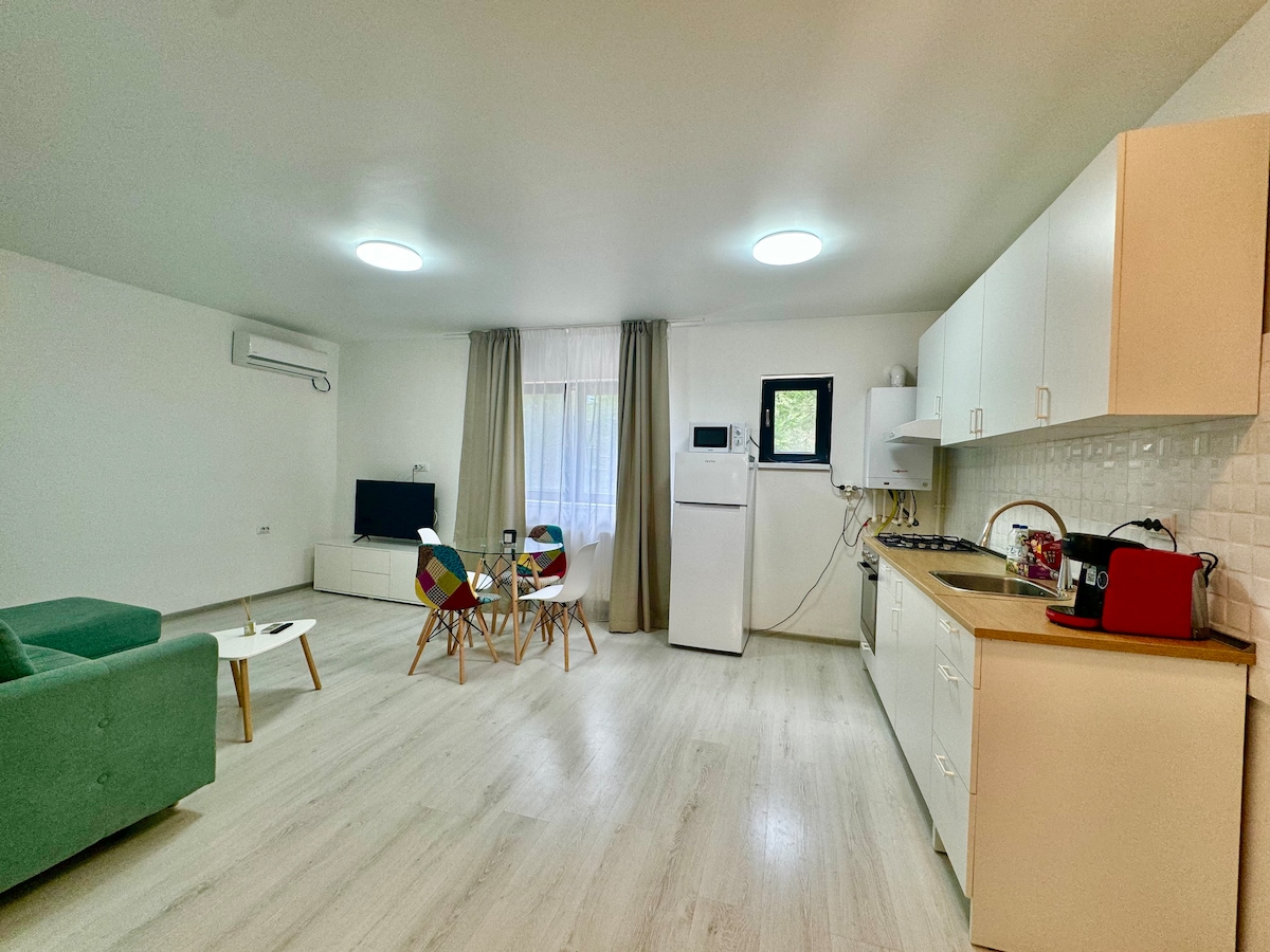 Gloednieuw, modern en gezellig toevluchtsoord in Otopeni met een lichte, ruime slaapkamer, gezellige woonkamer en eigen balkon voor ochtendkoffie of wijn bij zonsondergang. Bereik de luchthaven Henri Coandă in minder dan 10 minuten, ontspan in Therme Boekarest of duik in het Olympische zwemcomplex Otopeni - allemaal op slechts enkele minuten afstand. Ideaal voor tussenstops, stedentrips of wellnessvakanties, met comfort van hotelkwaliteit en onovertroffen gemak.
