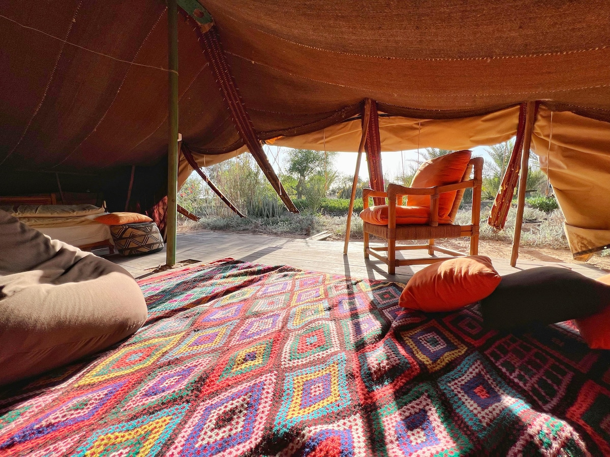 Tente berbère dans oasis écologique