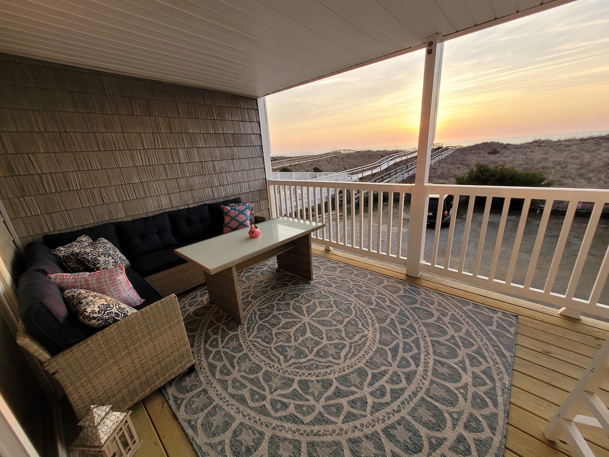 Take in the joys of Carolina Beach with our freshly remodeled 3 Bedroom condo on the beach with one of CB's LARGEST private balconies. Sit, dine, drink and relax with an unbeatable view of the ocean. Located just a 7 minute walk on the sand from the famous Carolina Beach Boardwalk, you are situated for the perfect balance of being centrally located to all entertainment, while still having private access to enjoy more room on the sand for your friends & family.