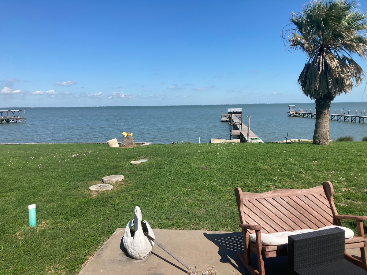 3/4 Acre in Keller Bay! Verlichte privéviship met groene lichten en een prachtig uitzicht op de zonsondergang! Privé-uitje groot genoeg voor de hele familie! House heeft wifi en tv-apps om de game bij te wonen of een film te kijken. Geweldige vis, geweldige eendenjacht! Onlangs gerenoveerde woning met alle bevestigingen. Garage om alle apparatuur tijdens uw verblijf op te bergen. Wasmachine/droger, minuten van bootlancering en openbaar park. 10-15 minuten naar Port Lavaca. Meestal 3'-4' diep aan het einde van de pier het hele jaar door. (In afwachting van het weer)