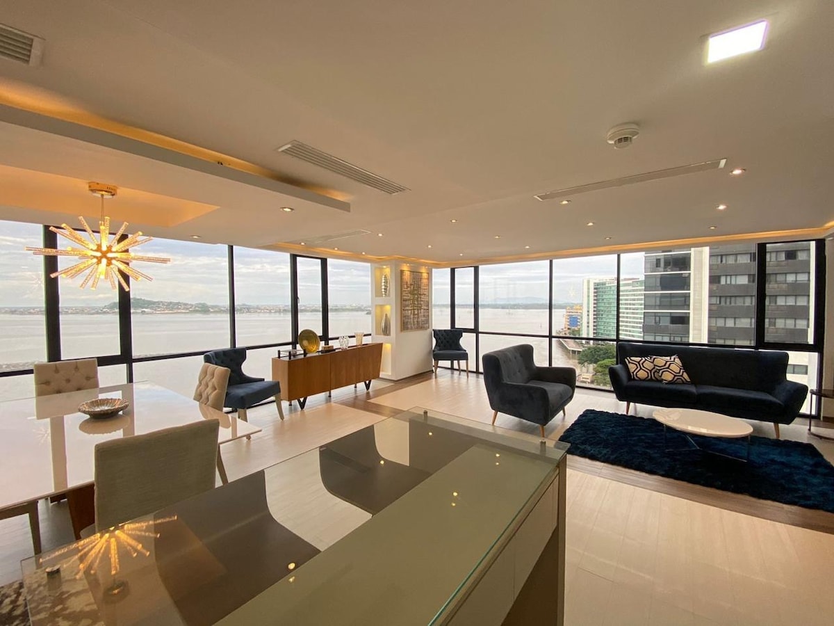 The apartment has been completely renovated. White is the predominant color in the apartment giving the sensation of amplitude and freedom. Decoration is minimalistic, with wood like finishes on the floor, teak doors, beds and nightstands. The view is amazing overlooking Santa Ana Hill, the Guayas River and the city. There is 24h reception in the building, and security cameras everywhere, very safe area and building.