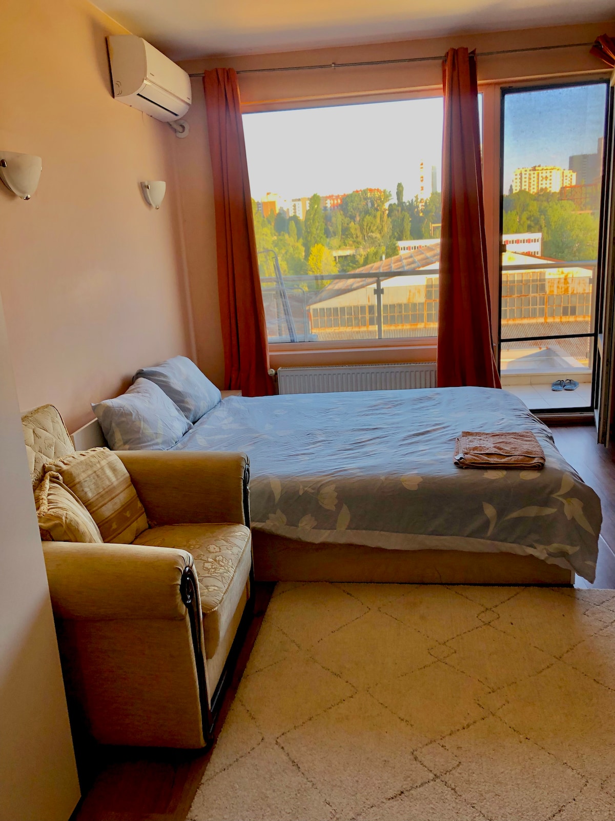 Een gezellig onlangs gerenoveerd appartement in een rustige groene omgeving in de buitenwijken van Sofia. Dit is een volledig gemeubileerde gezinswoning die we verhuren wanneer we niet thuis zijn (volledig uitgeruste keuken en badkamer, slaapkamer met kingsize bed en ruime woonkamer met een bureau, een bank en onversnelde wifi). Het appartement is gelegen in een woongebouw op de 6e verdieping en heeft een open terras met uitzicht over de omgeving en de Vitosha berg. Gratis parkeren op het terrein, 1 minuten lopen naar de bushalte en 15 minuten naar de metro.