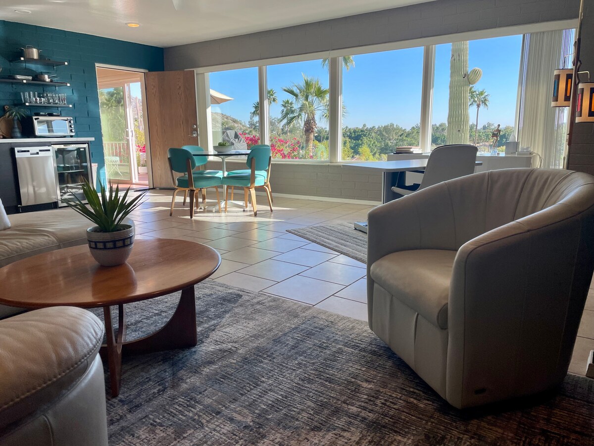Blijf hier en dompel jezelf onder in de natuurlijke romantische schoonheid van Arizona. Geniet niet alleen van een prachtig uitzicht op de bergen, maar ook van het stadsbeeld van het centrum van Phoenix. Met muren van ramen die de buitenkant naar binnen brengen, een ruime woonkamer, kingsize bed en idyllische privéterrassen, laat de schoonheid van de natuur de achtergrond zijn voor zoete herinneringen in ons huis met uitzicht op de heuvel uit het midden van de eeuw. Op slechts 15 minuten van de luchthaven houden onze gasten van de handige centrale stadslocatie.