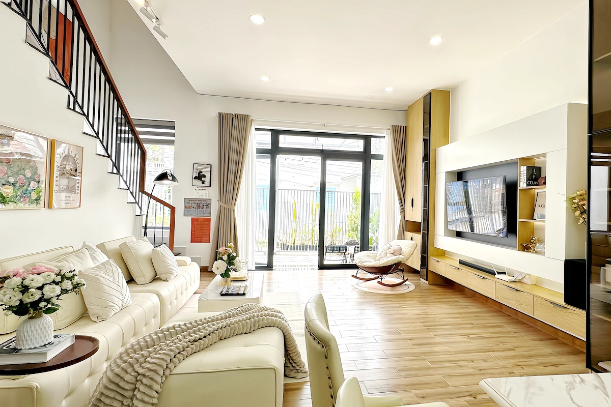Hoewel je 1 slaapkamer huurt, bezit je een heel huis met houten meubels en groene bomen in Dalat. Kamer met balkon en tuin. Het huis heeft een eigen keuken en garage, evenals alle toiletartikelen zoals borstels, handdoeken, shampoo ... Het huis ligt midden in het centrum , op slechts 10 minuten lopen van de markt, die extreem rustig is. Bekijk je dalat-huis.