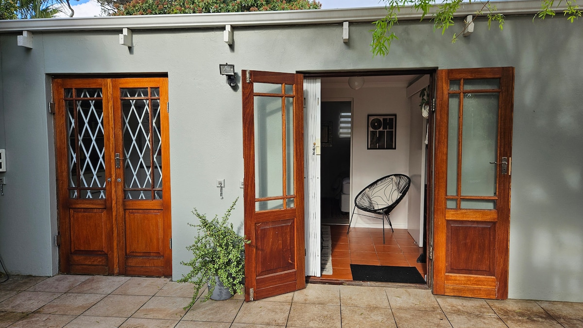 Ons huisje is een prachtig vrijstaand tuinhuisje aan de achterkant van ons familiehuis. Je zult genieten van onze plek vanwege de rust en privacy. Glazen deuren openen naar een mooie rustige achtertuin en er is beveiligde parkeergelegenheid op het terrein. Mijn ruimte ligt op slechts 2,5 km van Old Mutual, op 3 km van Vincent Pallotti en op 12 km van de internationale luchthaven van Kaapstad en is ideaal voor stellen, solo-avonturiers en zakelijke reizigers.