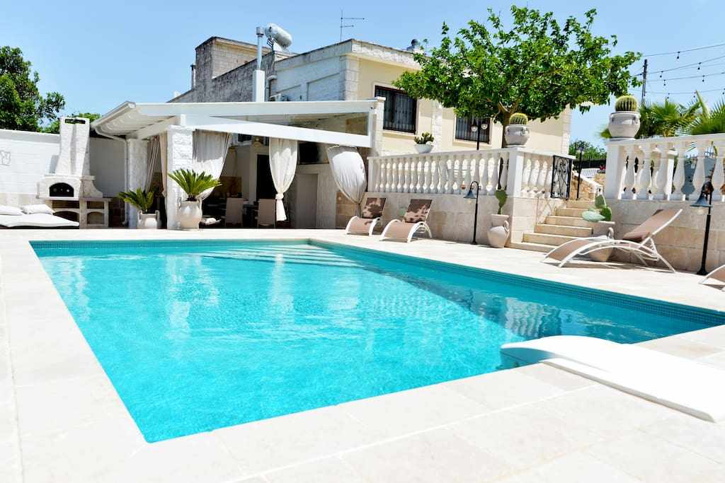 Creëer prachtige herinneringen met je familie en vrienden in dit prachtige, charmante huis. De GigaSuite is een enorme en elegante designvilla met SPA, zwembad, zwembad, fitnessruimte, solarium, speelkamer, muziekkamer, bioscoop, piano en bar. Het ligt op ongeveer 1 km van de prachtige zee van Alto Salento, waar de beste stranden gemakkelijk bereikbaar zijn in ongeveer 10 minuten rijden. De Gigasuite heeft zeven slaapkamers, zes badkamers, studeerkamer, volledige optionele keuken, tuin, terras en dak