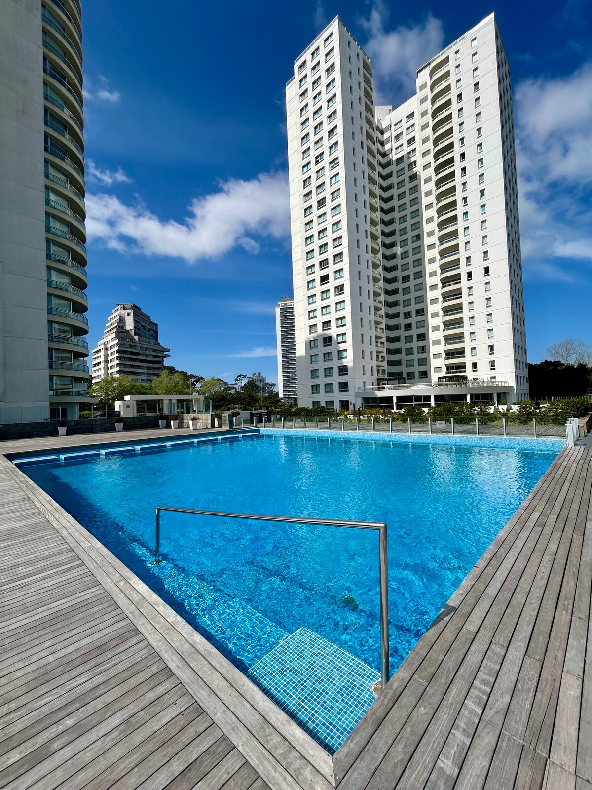 Centraal gelegen appartement, Franse neoklassieke stijl, in het meest strategische punt van Punta del Este, in het Design District, op een paar meter van Punta Shopping. Met prachtig uitzicht op Playa Brava, Playa Mansa en het bos. Niet te missen voorzieningen: 2 verwarmde zwembaden, een open en een gesloten, 3D-bioscoop, barbecues, spa met sauna 's, ontspanningsruimte, aerobics, spelletjes en massages, sportschool, stranddienst met transfer, kinderspelen, wasserette, conciërge, WIFI en schoonmaakservice.