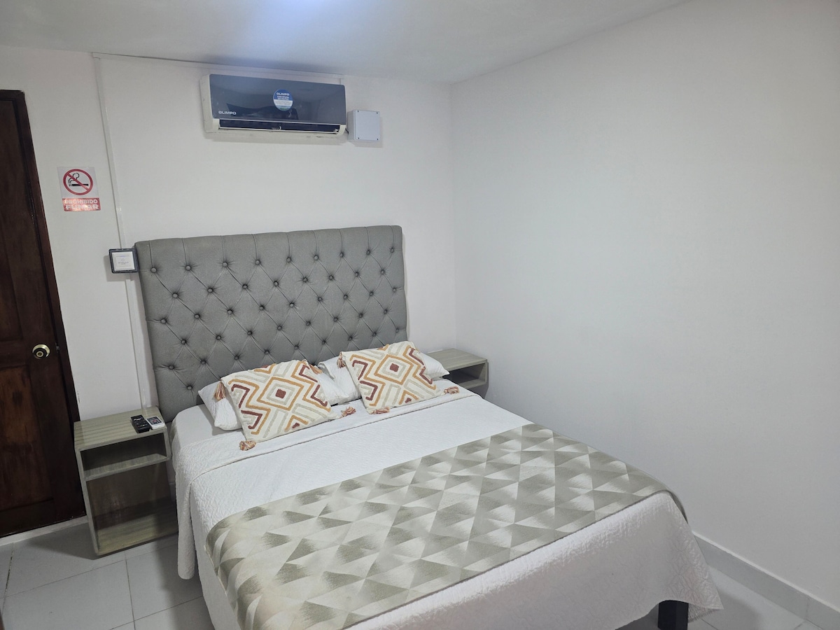 Geniet van een suite met airconditioning in het exclusieve Porto Horizonte-gebouw, gelegen in Bello Horizonte, Santa Marta, op slechts een half blok van een van de beste stranden van de stad. Dit appartement is ideaal voor koppels, zakenreizen of kleine gezinnen, met alles wat je nodig hebt voor een comfortabel en ontspannen verblijf.