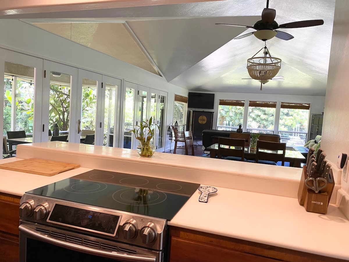 OPMERKING: Deze vakantieboerderij wordt niet geleidelijk stopgezet op grond van de regelgeving van de county. Veel appartementen aan de kust dreigen momenteel te worden afgebouwd. Volgens de wetgeving van de staat Hawaï vallen vakantieboerderijen onder 'Toegestaan gebruik' op echte landbouwbedrijven. Je kunt er zeker van zijn dat je boeking hier beschermd is tegen inmenging van de overheid. Dit eclectische, antieke Hawaïaanse huisje ligt op een heuvel boven een schilderachtige junglekloof en biedt in alle richtingen een adembenemend uitzicht. Open en luchtig; de aandacht voor detail straalt uit elk detail.