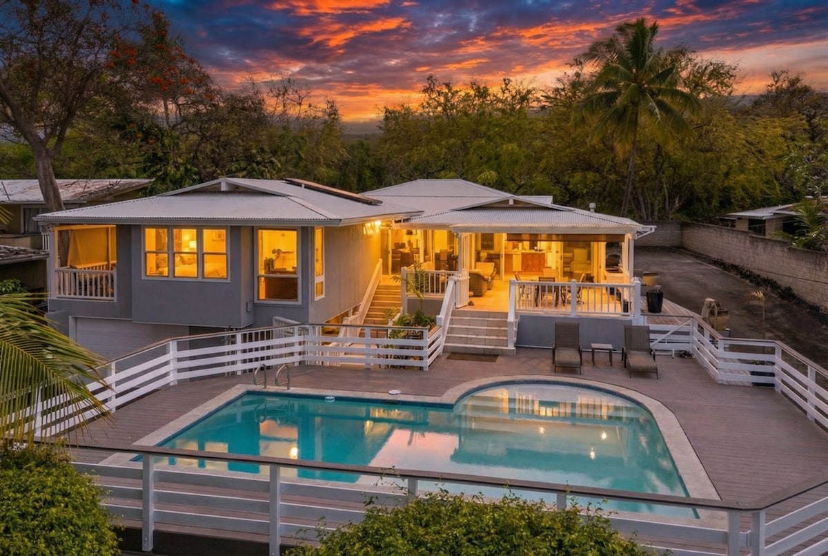 Huis met zwembad en uitzicht op de oceaan. Kona Tropical Oasis.