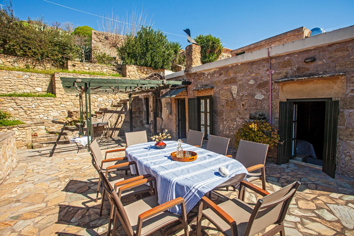 Kallimento Dimitra is een traditioneel Kretenzisch huis, ooit het huis van onze grootouders en vernoemd naar onze grootmoeder Dimitra. Het is zorgvuldig gerestaureerd met respect voor het karakter en behoudt de authentieke Kretenzische sfeer. - Traditioneel Kretenzisch stenen huis - Privéterras met olijfbomen en uitzicht op de bergen - Eethoek buiten onder moerbeibomen - Rustige dorpssfeer - Volledig uitgeruste keuken Het terras wordt omringd door natuur en nodigt uit om te ontspannen en te genieten van warme zomerdagen.