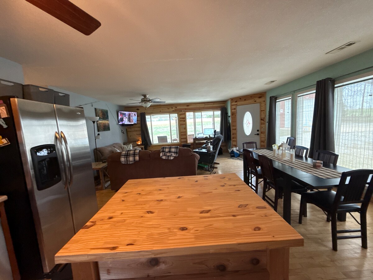 Gelegen op slechts 1 mijl van Lost Woods Golf Course en 4 minuten van zowel Theodosia Marina als Spring Creek Lake toegang. Beschikt over een volledig uitgeruste keuken met basisvoorzieningen. Een ruime woonkamer met een dubbelzijdige open haard, perfect om binnen te ontspannen. Buiten kun je genieten van een grote houtkachel. De grote slaapkamer heeft een kingsize bed, terwijl de tweede slaapkamer twee queensize bedden biedt; beide uitgerust met smart-tv's. De badkamer heeft een dubbele wastafel. Een waskamer met wasmachine en droger beschikbaar.