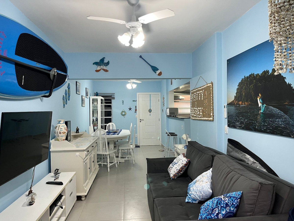 Super Host Brasil presents this delightful beachfront apartment, with an exclusive location and incredible ocean views. It features a suite with a king-size bed, Deka gas shower, and air conditioning in both the bedroom and living room. It accommodates up to 4 people — ideally 2 adults and 2 children. The condominium offers Wi-Fi, cleaning service, a swimming pool, and a beach bar on weekends. Valet parking is available for an additional fee on-site. We are pet-friendly.