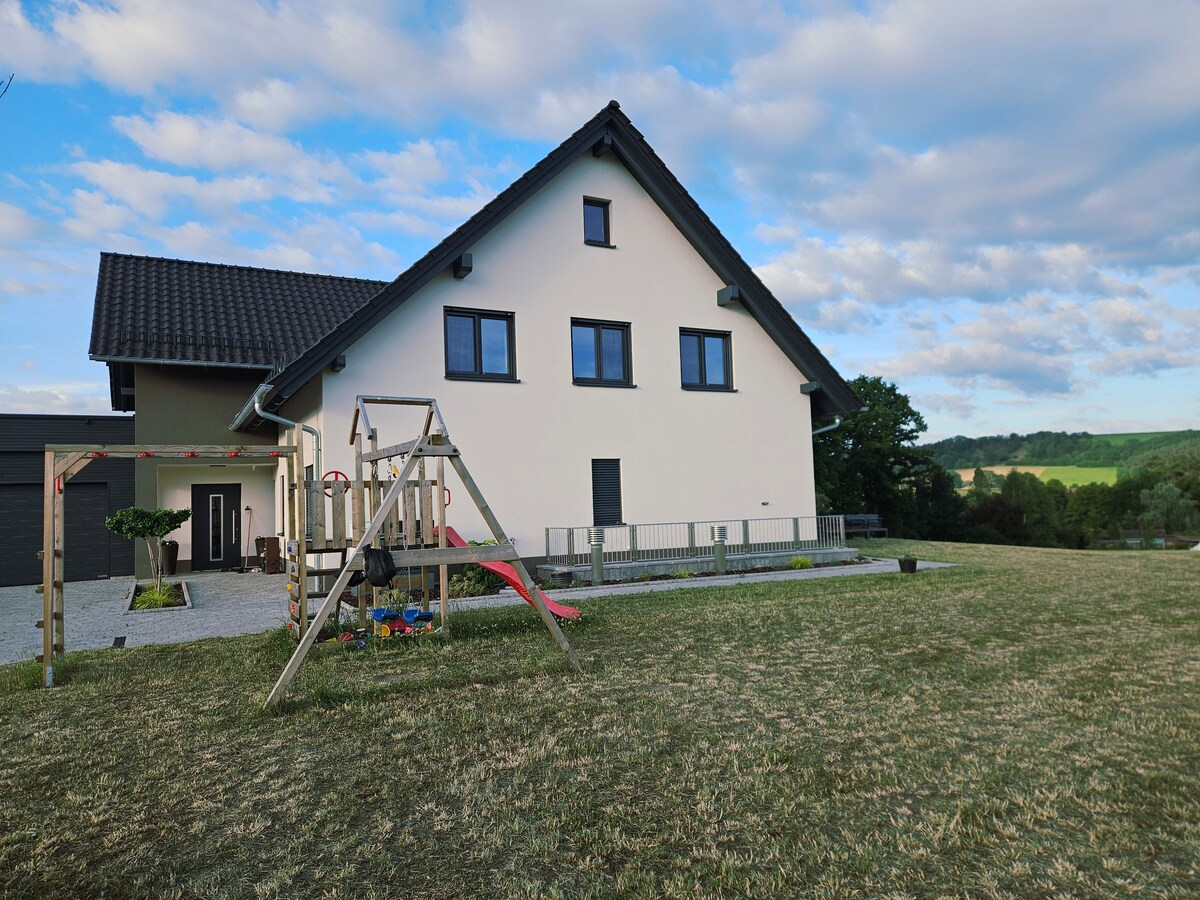 Wij bieden een toevluchtsoord midden in de natuur. Gelegen direct naast een grote boerderij die door onze familie wordt gerund. Ons nieuw gebouwde, modern ingerichte appartement biedt rust, uitzicht in de verte en pure natuur. Je ziet alleen maar weiden, bossen, velden en de koeienstal. Ideaal voor vrienden, koppels of gezinnen. Het Frankenbeierse Gebergte en het Fichtelgebergte zijn niet ver weg, evenals gezellige brouwerijen, restaurants en vele andere activiteiten.