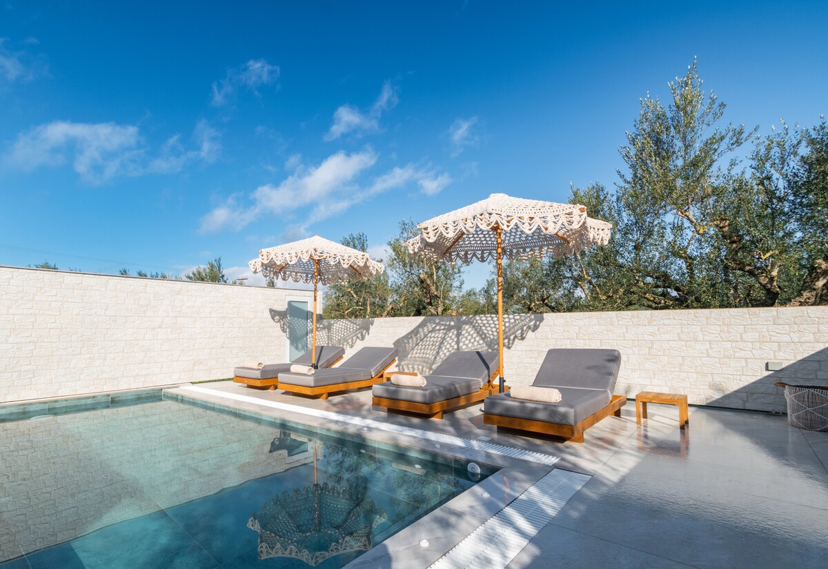 Luxe villa met drie slaapkamers, privézwembad, uitzicht op zee