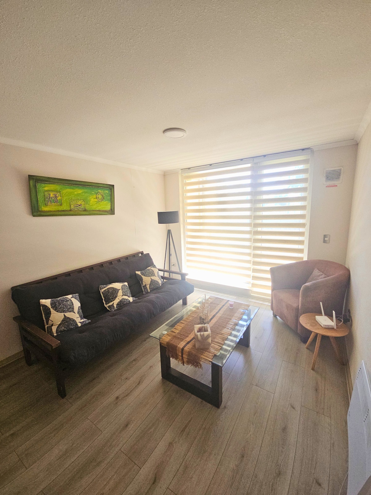Gezellig appartement op km 1 naar de vulkaan. Wifi, tv-kabel (voetbalkanaal inbegrepen), zwembad, eigen parkeerplaats, terras, lift. We accepteren verblijven van één nacht. DM om de beschikbaarheid te controleren. Het heeft een tweepersoonsbed met beddengoed en handdoeken, evenals een slaapbank voor twee personen. Bureau en comfortabele stoel, perfect voor thuiskantoor. Slechts 3 minuten rijden van het centrum van Pucón, en zonder die eindeloze files op de wegen Villarrica en Pucón.