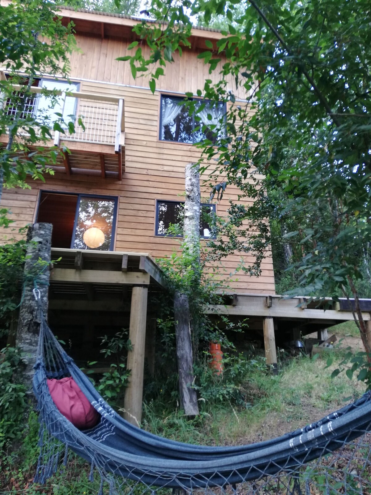 Hut tussen inheemse bomen. Lodge.namoncahue