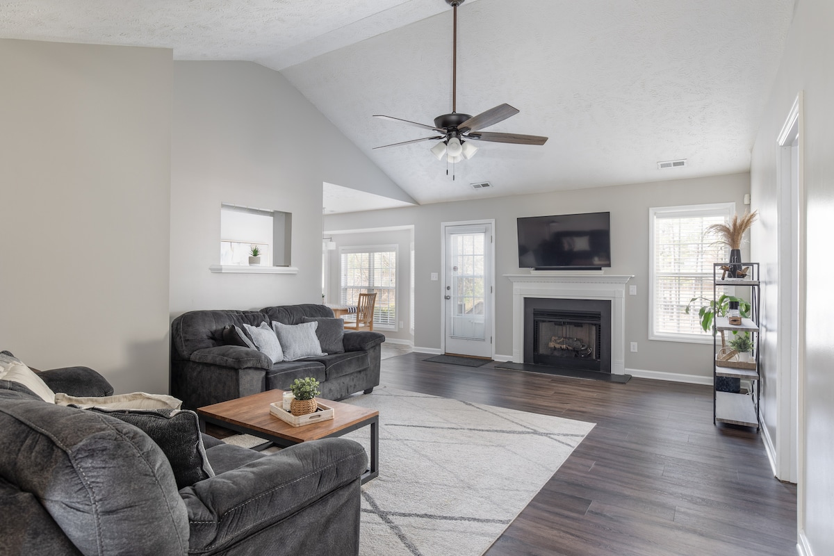 Een modern rustiek huis met persoonlijke accenten in een rustige buurt in Fayetteville. Het is geweldig voor een wandeling of hardlopen. Ongeveer 5 minuten naar Ft Bragg, 10 minuten van Raeford, 25 minuten van I95 en 25 minuten naar de luchthaven. De woning heeft twee slaapkamers met queensize bedden. De keuken is van alle benodigdheden voorzien die graag koken. De woonkamer is uitgerust met een televisie en een roku. Een wasmachine en droger zijn beschikbaar voor gebruik in de garage.