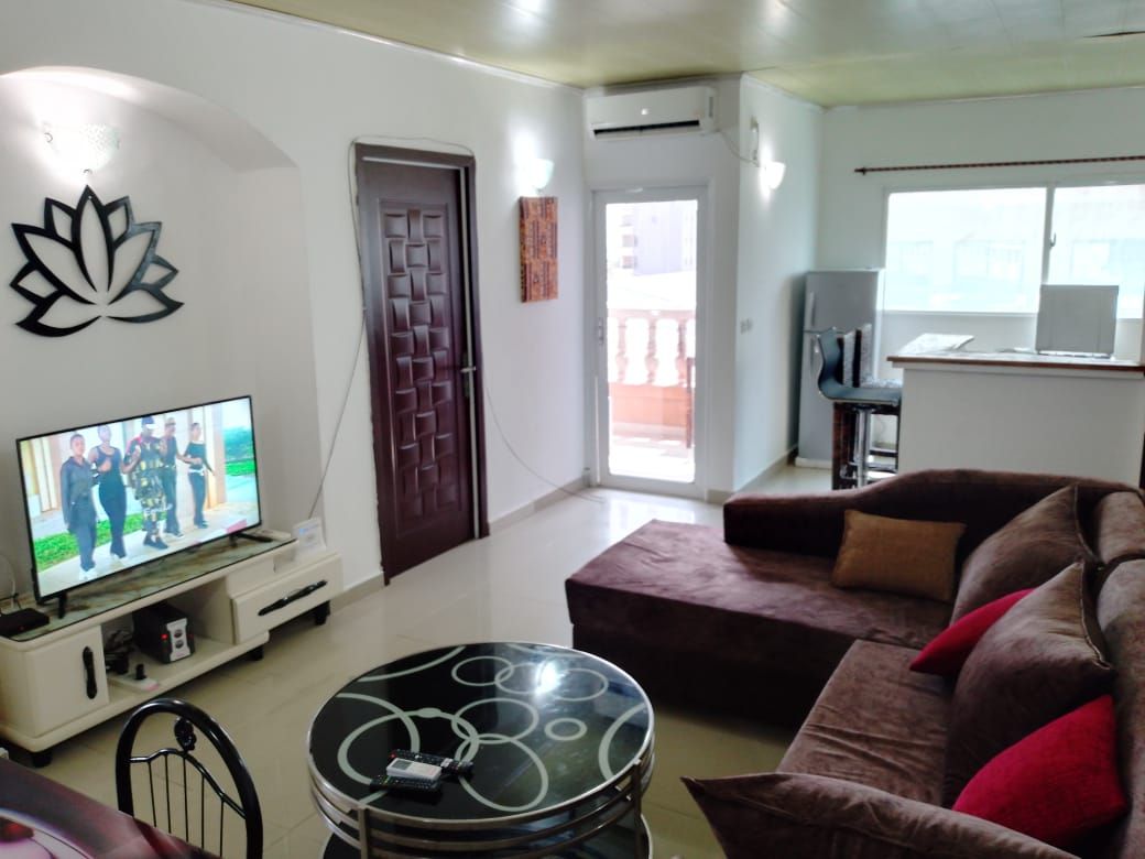 Logement spacieux et lumineux situé dans une zone calme et sécurisée à 5 min à pied de l’Ocean Située dans résidence sécurisée en bord de mer, l’appartement est constitué de deux chambres avec chacune une salle de bain et des toilettes individuelles. Un séjour, un balcon et une cuisine spacieuse équipée d’une machine à laver, un frigo, un congélateur, un micro-ondes, bouilloire, et une cuisinière. Un Service de ménage inclus Groupe électrogène inclus