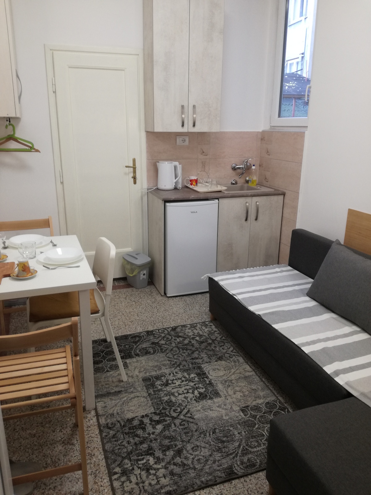 Dit appartement van 80 vierkante meter heeft twee slaapkamers gedeeld door een grote keuken/eetkamer/woonkamer. Het appartement is gelegen op loopafstand van de belangrijkste toeristische bezienswaardigheden van Belgrado – Nationale Assemblee, Museum en Theater, Knez Mihajlova straat, Kalemegdan Fortress, Skadarlija (de bohemien wijk). De gasten kunnen verschillende eet- en drinkgelegenheden vinden in nabijgelegen restaurants, cafés en pubs. Enkele van de best beoordeelde eetgelegenheden bevinden zich in deze omgeving. Er is een 24/7 supermarkt op de hoek.