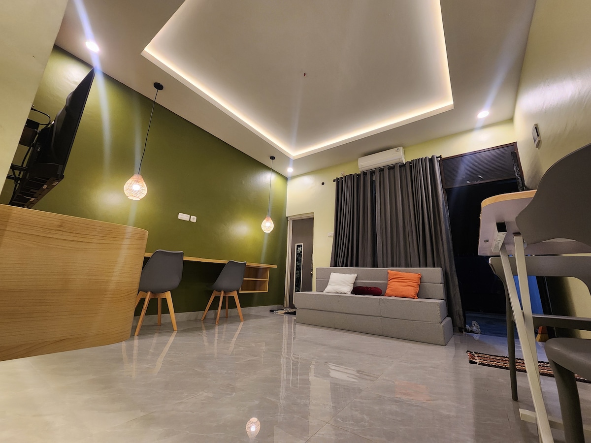 Paviliun 2BR Executive menghadirkan kenyamanan ala hotel bintang 4 dengan dua kamar elegan, ruang tamu modern, dan dapur lengkap. Berlokasi hanya 400 m dari Jalan Sudirman, dekat bandara, RS Awal Bros, pusat pemerintahan, BUMN/BUMD, dan dealer mobil. Nikmati parkir pribadi di depan unit, Wi-Fi cepat, serta suasana tenang dan eksklusif untuk pengalaman menginap terbaik.
