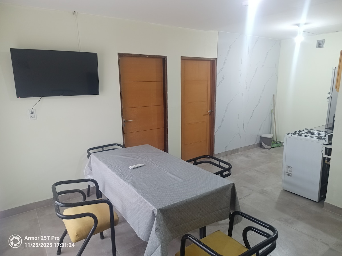 🌿 Encantador monoambiente con parque – ideal para descansar y disfrutar 🌿 Un espacio cómodo y luminoso, con todo lo que necesitas para sentirte como en casa. Este monoambiente cuenta con una habitación amplia, baño privado, TV, y un hermoso parque para relajarte o disfrutar al aire libre. 🏡 Perfecto para escapadas cortas, viajes de trabajo o días de relax. 🐾 Pet friendly, tus mascotas también son bienvenidas. 📺 Equipado y listo para disfrutar desde el primer momento. 🚭 prohibido fumar